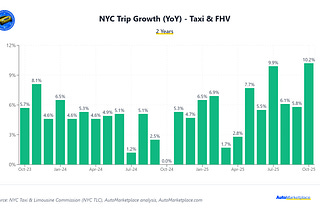 Sustained trip growth across both yellow cabs and non-taxi for-hire vehicles (FHVs) signals durable demand into the new year