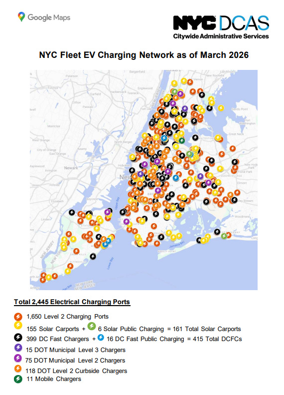 To be specific, among the 115,179 taxis and for-hire vehicles (FHVs) in the city’s fleet, 13,146 are EVs. However, there are only 415 DC “Level 3” fast chargers located across the five boroughs. These chargers must also be shared with 33,537 passenger EVs registered in the five boroughs, though some private owners may have home charging, as well as thousands of commercially used EVs registered to New York City addresses.