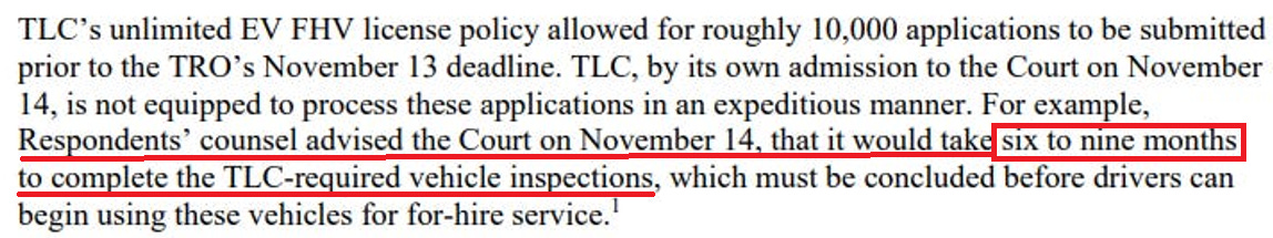 A few days ago, we published an article: ⚡ TLC Could Take 6 to 9 Months To Process ~10,000 New EV Plate Applications. Some jumped on our reporting saying we were trying to essentially spread ‘fake news’ or were ‘in the pockets’ of the TLC rental companies 🤔. In reality, we were simply reporting on a letter NYTWA filed with the New York State Supreme Court that stated the following: