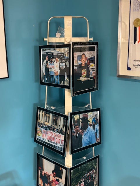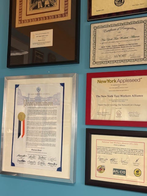 We arrived early. While we’ve interviewed Bhairavi and interacted with NYTWA advocates over the years, we had never been inside their offices. What stood out immediately were the walls—lined with detailed posters, campaigns, milestones, and hard-fought victories.